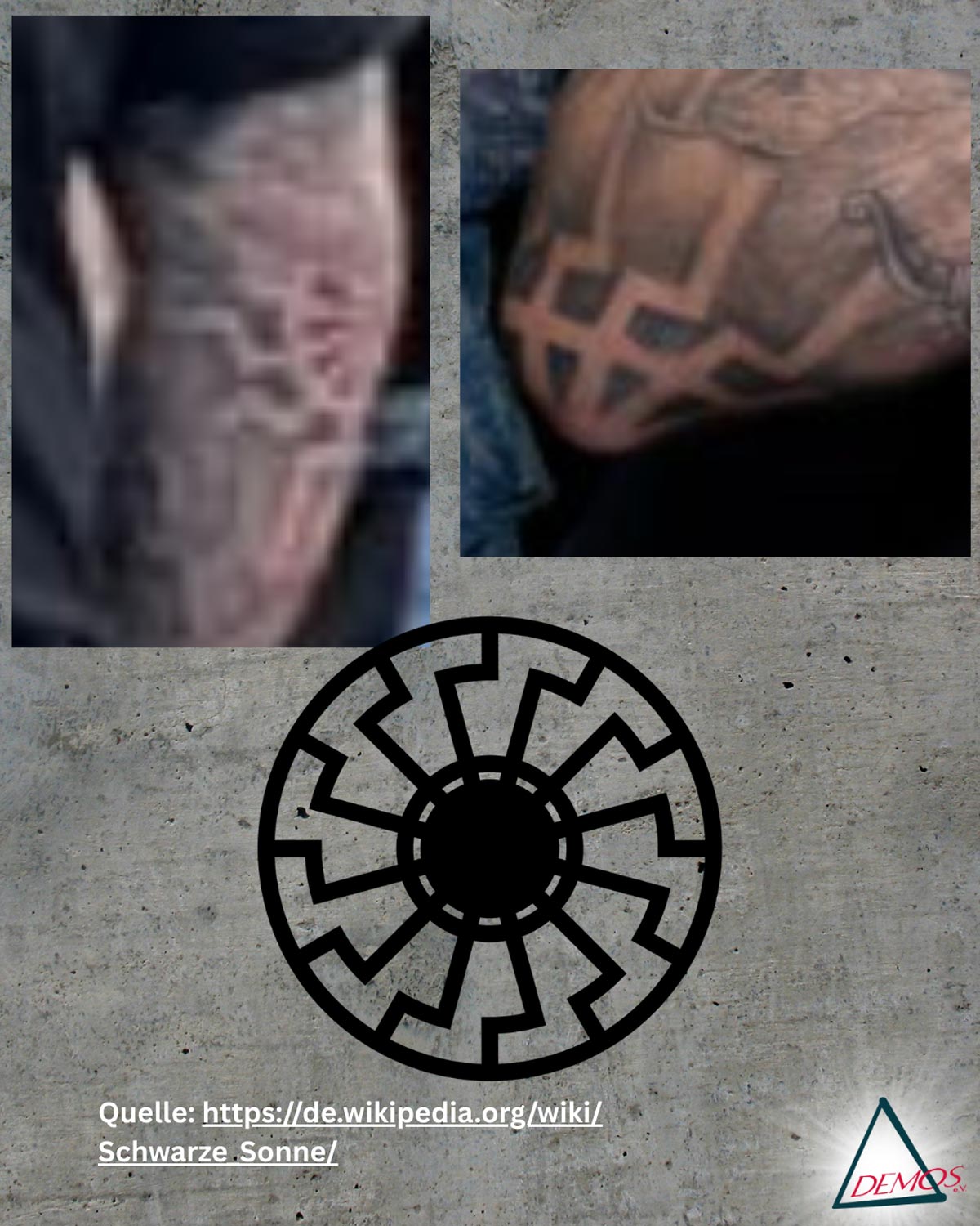 Einordnung: Der Hintergrund der „Schwarzen Sonne“ als Symbol ist ein eindeutiger Bezug auf extrem rechte Ideologie. Zusammen mit dem eingegrenzten Zeitpunkt der Tätowierung handelt es sich damit um ein weiteres Indiz für die These, dass die Distanzierungen von 2005 heute keinen Bestand mehr haben. Ganz im Gegenteil muss diese Entscheidung wohl als ein klares Bekenntnis zu einer extrem rechten Gesinnung gewertet werden.
