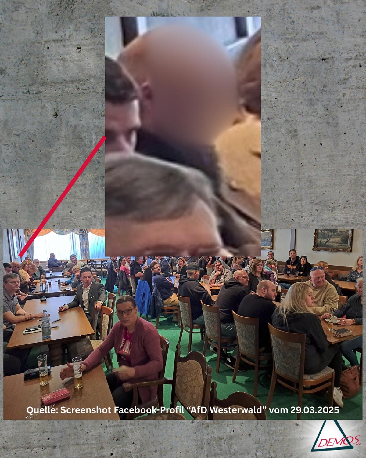 2025 besucht Lars H. nachweisbar zwei Veranstaltungen der AfD Westerwald in Höhn. Die AfD Westerwald ist für ihre Kontakte und Verbindungen in die extrem rechte Szene bekannt. In den zurückliegenden Jahren, Monaten und Wochen dokumentierten wir viele dieser Verstrickungen akribisch. Eine Veranstaltung fand statt in den Räumlichkeiten des ehemaligen Westerwald Grills, die zweite Veranstaltung ist das „Vorglühen mit der AfD“ – hier schließt sich der Kreis zum Aufhänger dieser Recherche.